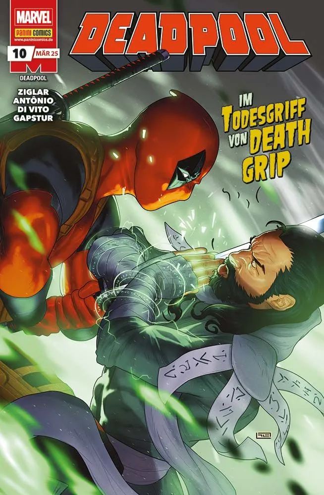 Inhalt: Deadpool und seine Profikiller leben in ständiger Gefahr. Dennoch möchte Tochter Ellie auf jeden Fall in die Fußstapfen ihres Vaters treten. Obwohl Wade ihren Wunsch strikt ablehnt, nimmt Taskmaster den gewieften Teenager unter seine Fittiche und prüft sie auf Herz und Nieren. Doch als ihm der mystische Martial-Arts-Anführer eines Totenkults ein verlockendes Angebot unterbreitet, hat der regenerierende Degenerierte ein weit größeres Problem. Plötzlich wird er mit Schmerzen und Gefühlen konfrontiert, wie er sie bislang gar nicht kannte. Ist Ellie bereits in der Lage, ihren Vater aus dem Todesgriff von Death Grip zu retten?